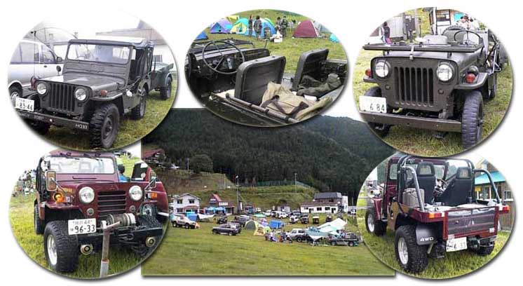 参加車輌の一部と大屋スキー場全景です。ここに写っていない車輌(ガレージ駐車) 合計で100台以上の4輪駆動車が集まった。 |