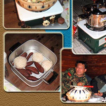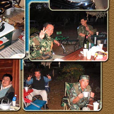 | 夜は、不良特製キノコとチーズの鉄板焼きで第三段階飲み会、飯は圧力釜で炊いた美味しい飯・・・ 夜食は、不良特製ぶた饅に吹かし芋、下の方の画像は事務局の様子ですが気分良くよっぱらっていたようです? (よめはん撮影)鍋は朝から当方自慢のもつ鍋をしました。もつだけで1,5Kg入れていますので 贅沢、肉で野菜が入らない状態(笑)朝早くから雨模様でしたが午後2時ごろキャンプ場をあとにしました。 あまり画像も文面もありませんが、また集まってアウトドア宴会をやりましょう?みなさんご苦労さんでした。 |