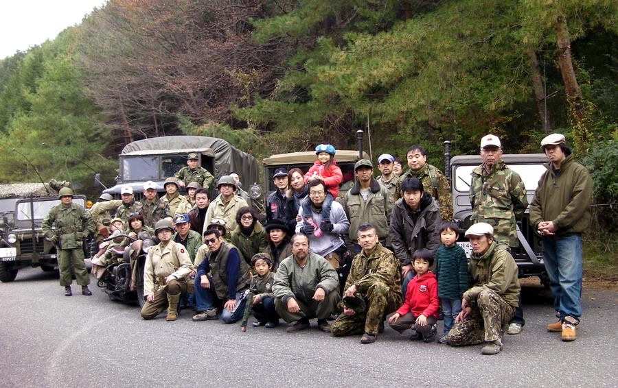 日曜日の朝には、家族で参加されたメンバーの方が、みんなの為にトン汁を作ってくれました。それが美味いのなんのって、 冷えた体に、温かい美味いトン汁が入ってくるのがわかります・・・みんな各々のカップや器を持って並んでいました・・(笑) こんな素晴らしいサプライズがあったのは、今までで初めてでした。ご馳走様でした。コンボイもいつもに無く大量車両、そして大型車両も入っての迫力あるものでした。 今回、滋賀県から参加のM35トラックもコンボイ走行に参加、やっぱり大型車輌は迫力ありますね〜・・・後ろ走るのは排気ガス たまりませんけど〜・・・(笑)帰りずっと後ろ走ってました・・・(涙)マイミクでもある松宮さんも富山県から参加してくれました。 いつもは、M151A2の海兵隊仕様ですが、今回は、73式ジープで登場でした。コンボイ途中で記念撮影後、四国から参加の方たちと 帰路につかれました。遠方のみなさん気をつけて帰って下さ〜い!!