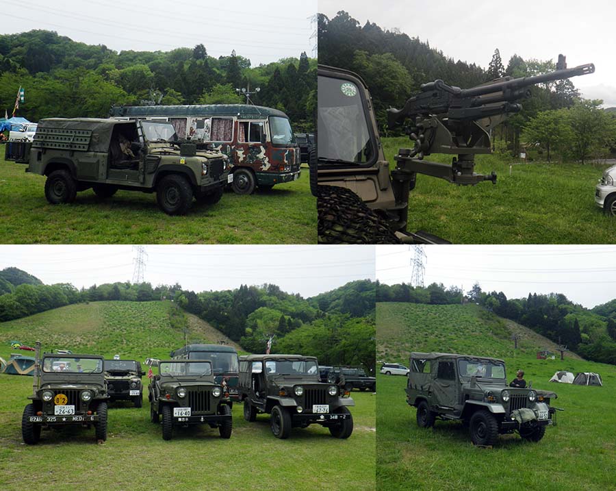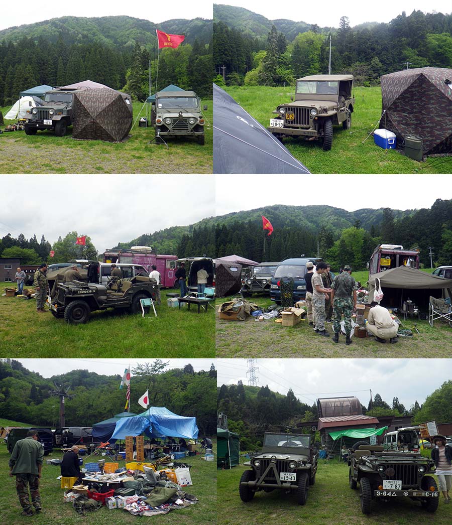 | 会場到着、そしてウッディパル余呉へ使用料を支払い会場へ古谷氏が受付をしてました。 そして挨拶とカンパをして事務局のところにいつもM151A2の車検をお願いしている北村自動車の社長もおられたので挨拶を、そして奥へ・・・ 懐かしい仲間に挨拶をして、今回は一番下の場所で設営しました。いろいろな物を食いビールを飲み、 楽しい時間を過ごしました。 いつもの大西さんと岩田さんのコンビ最高に面白い。二人が参加しているだけで来る価値があります。当方にとっては(笑) |