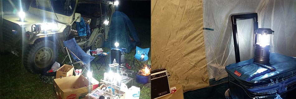 今回は、ガソリンやガスランタンをやめてLEDランタンにエネループを入れて 合計13個と懐中電灯LEDとHIDを持ってきました。そしてストーブ類も炭と七輪です。 もちろん火点けには火王を持ってきていますので楽勝で着火できました。 LEDランタンは、火を使わないのでテントの中にも使用できて大変便利です。家にあるもの全て(同じ物) を持ってくれら20個以上になりますが(笑)今回は、これだけです。何か装備も楽な物に変えてきている 自分がいて、軟弱になってきたことが良くわかります。