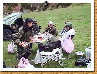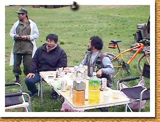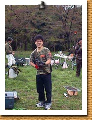 色々なめんめんと・・・あくびをしているのはYahooオークションで有名な ノンクレームで宜しくのチュンです。ひげのおやじはKDS神戸電子サービス 社長の大谷氏、白い帽子の人は軍用無線機専門店(有限会社)BM 社長の宮当氏 です。女は当方のよめはんです。