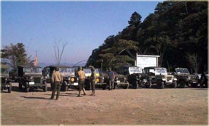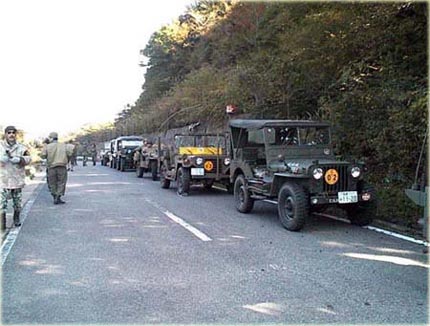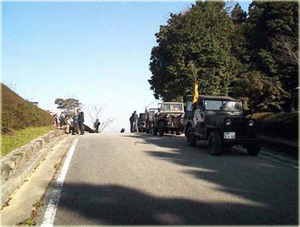 翌日の朝に行われたコンボイ走行の情景です。 これは、コンボイ記念撮影場所の手前ですが一般観光客が数百名 観光バスで来ていたので移動するまで道路にて待機しました。 その時の画像です。