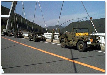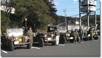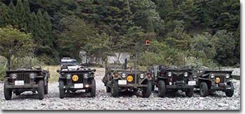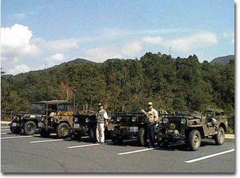 ★ミリタリータイプジープを愛する有志で初のキャンプに?いつもはキャンプ 仲間の盛武氏と2台での行動でしたが今回は5台での行動と言う事でコンボイ走行も大変良かったです。