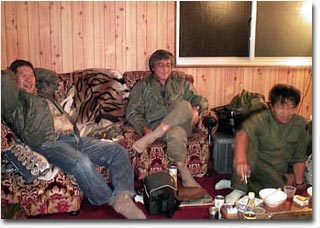 今回さそって頂いた京都ジープクラブの木村氏、キャンプ仲間の 盛武氏、宴{ケ画像が似合う当方です。