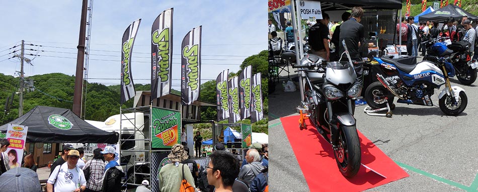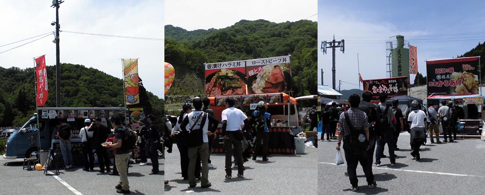 会場へ到着するまででもバイクが並んで、なかなかガレージに入れませんでした。 なんとか入って、一通り見て回りました。無料プレゼントは早くになくなったようです。人数多すぎて(涙) 途中でお腹が空いたので何か食べようかと思ったのですが、全ての店に行列。とりあえず食うのは我慢しました。 とりあえず気温も上がってきたので人の少ない場所へ移動することにしました。