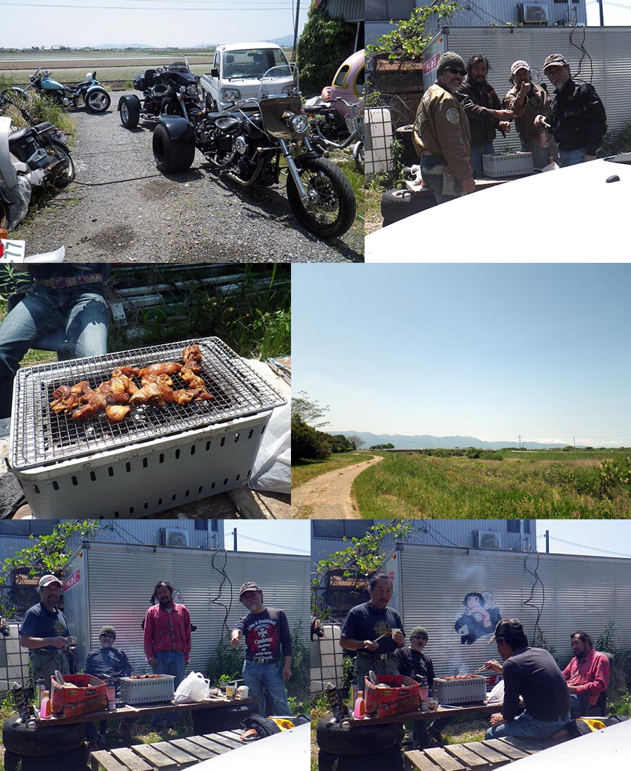 | 途中せっかく4台になったので、またメタセコイヤ並木、海人さんは 日陰がお好きなようです(爆)ちょうどそこにギャルライダーが一人 停まっていて、写真を撮ってくれました。可愛いギャルでした。 そして、 高島の元祖味付かしわ [ 鳥中 ] でひね鶏肉を買って、直ぐ近くにあるガソリンスタンドで みんなガソリン入れるようなので当方もセルフの練習を・・・(笑) そしてみんなでサッチャンへ向いました。 サッチャン到着。みんなで火を熾し楽しく食いました。 飲み物はツーがやるインスタントコーヒーブラック(ホット) みんな4杯ほど飲んでいましたね〜(笑)今度はコーヒー丼をする らしい?????? 楽しく昼飯も終わり、当方は用事があったのでサッチャンを午後2時40分ぐらいに 出ました。他の人達は、また機械物についての話で盛り上がっていたのだろうと 思いますが?帰り道は途中少し混んでいましたが野洲から高速にのり帰りました。 高速は、空いていて家には午後4時までに帰れました。 その後、ガレージにトライクを入れて(これが結構時間がかかる)そして 風呂に入って、あとはインターネットをしながらビールを二本飲みました。 美味かった〜〜 今日は、ありがとうございました。また引っぱりだして下さい。宜しく!! |