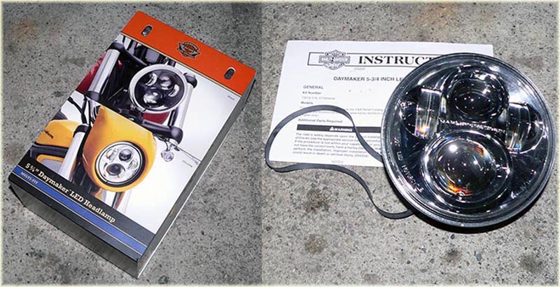 | 2014年3月5日(火)先日ヤフオクで落札したハーレー純正LEDヘッドライトが届いた。73273-11A旧タイプではあるが いまだに6万円近くしている。今回ヤフオクで新品を30,500円で落札できた。それを取り付けた。 |