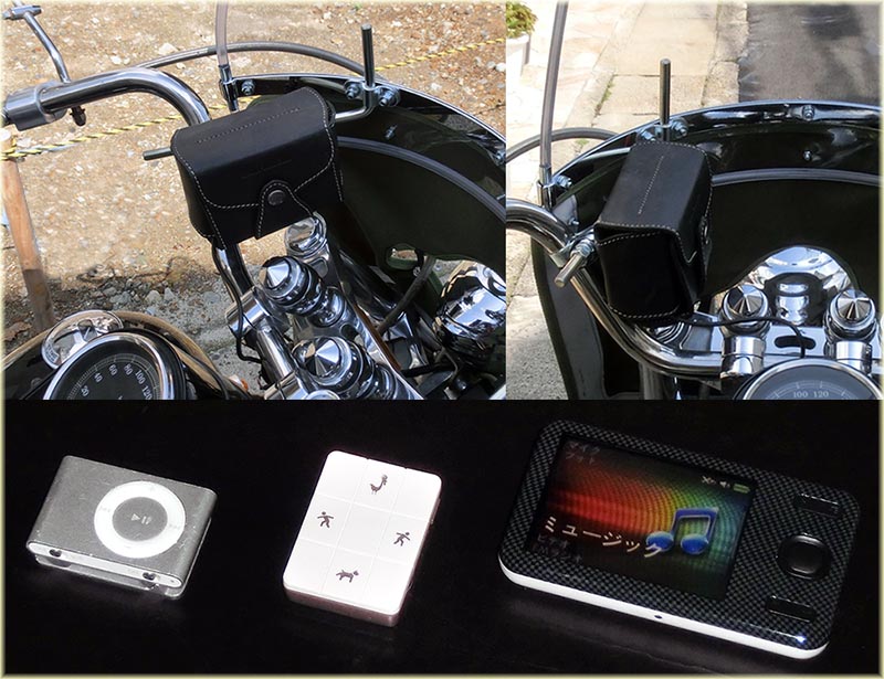 | 2014年6月8日(日)昔、昔は画像左の初代iPod shuffleを新品で購入して長年使用していたがある日突然壊れた。 そこで画像中のiriver S7をヤフオクで1000円ほどで落札して使っていたが以前調子が悪くなってほったらかしにしていた。現在はタブレットをBluetoothで 使用して音楽を聴いているがトライクでは小型のMP3プレーヤーが欲しいので今度はamazonで良い中古美品が出ていたので買った。 これが画像右のCREATIVE ZEN X-Fi Style 8GB である。4000円弱だった。結局iriver S7も壊れてなかったので買う必要も無かったけど(笑) それを昔にETCを入れるために中古で買ったハーレー純正のケースがあったので風防のステーに付けてみた。まあこれで良いでしょう? |