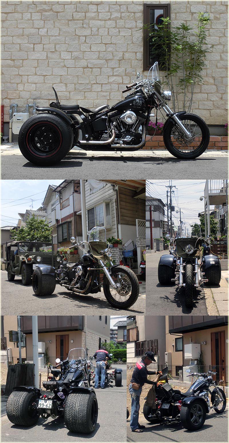 | 2014年7月12日(土)今日は、家の作業を朝6時30分からずっとやっていた。そして昼にやっと終わったので、トライクの整備を少々。 以前、ベルト修理に出した時に位置がずれたのだと思うが、気にしなければなんていう事でも無く2年が過ぎてしまった(笑)フェンダーをもう少し前へ降ろした方が見た目格好良いので だいたいだが以前の様に移動してみた。まあだいたいですけど・・それをしている時に、かんなパパが登場、スパナ押さえを手伝ってもらった(笑)今日は、トライクのオイル交換をしたあと 試運転がてら遊びに来てくれました。今から新潟へ一人でツーリング行ってくるって出発して行きましたけど・・・・タフですね〜!! ※先日の夕立で流れ込んだどろ水でタイヤが汚れている・・・洗車せずに撮影。もう何もする気力無し(涙) |