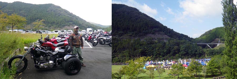 10月7日(日)今年で4回目となる RSタイチさん 主催のイベントですが、今年も、 ライダーススタンド2りんかん さんも協同開催!! 今年も参加しましたが、トライクを上のガレージに誘導され歩いて下りるのが邪魔くさかったです。 到着した時は、天気も良かったのですがだんだん雲が出てきて雨になりました。 今回は、撮影のみして、またまた南丹サンサン祭も観に行ったのですが大雨・・・でもカッパ持って行ってたので問題ないですが(笑) まあ直ぐに小雨になりましたが撮影したもの全部水滴でボケボケ、それにマイミクのドギーさんも見当たらなかったので自動販売機で お茶を買って休憩してから出発しました。
