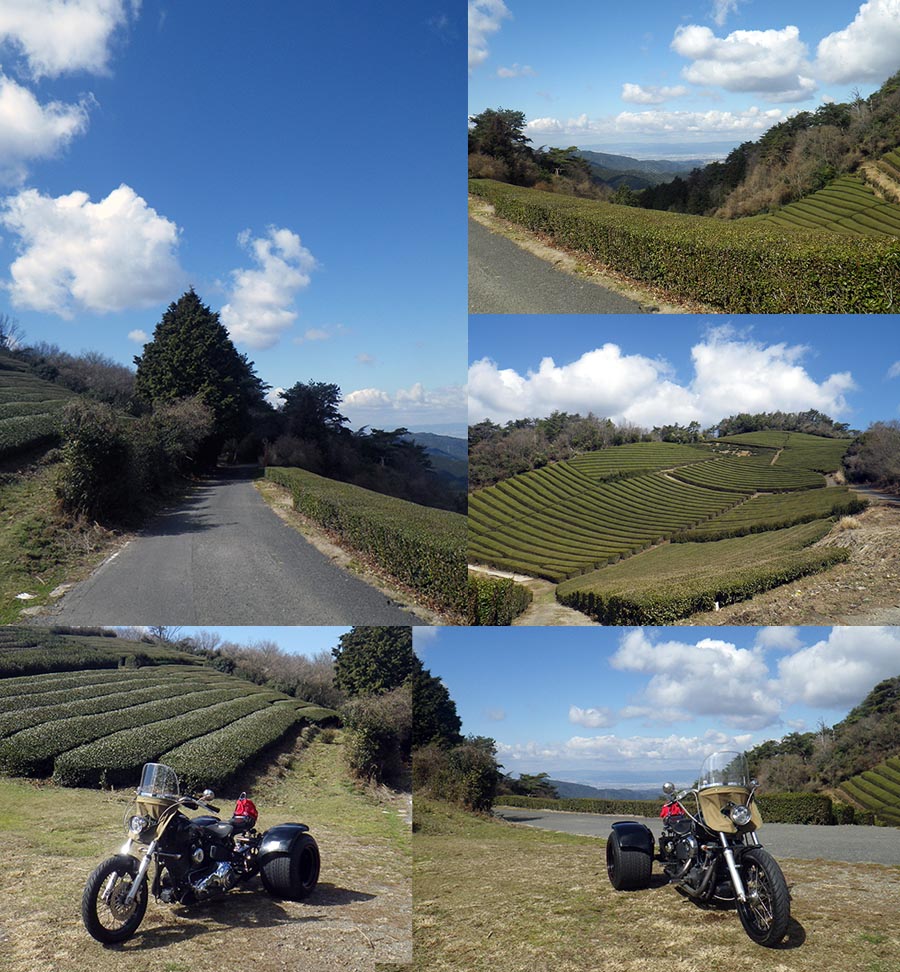 | くつわ池を出てから、いつもとは違う道を行く事にしたがかなり走りにくい道を走っていたら 金胎寺と言う寺への看板があったのだが・・・道が酷く断念。違うコースを走っていると綺麗な景色と茶畑の場所に到着、そこで記念撮影のみして 道を進んだ。 |
