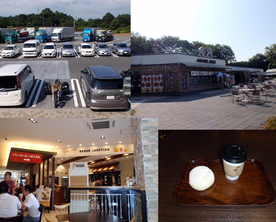| そして伊勢方面へ行く事にした。途中、伊勢自動車道 三重県 アノウ 安濃SA(サービスエリア) 下り で朝飯がわりにパンとコーヒーを飲んで少し休憩。 残りコーヒーを入れられたので不味かった。半分しか飲まなかった。新しいのを入れろよな〜 |