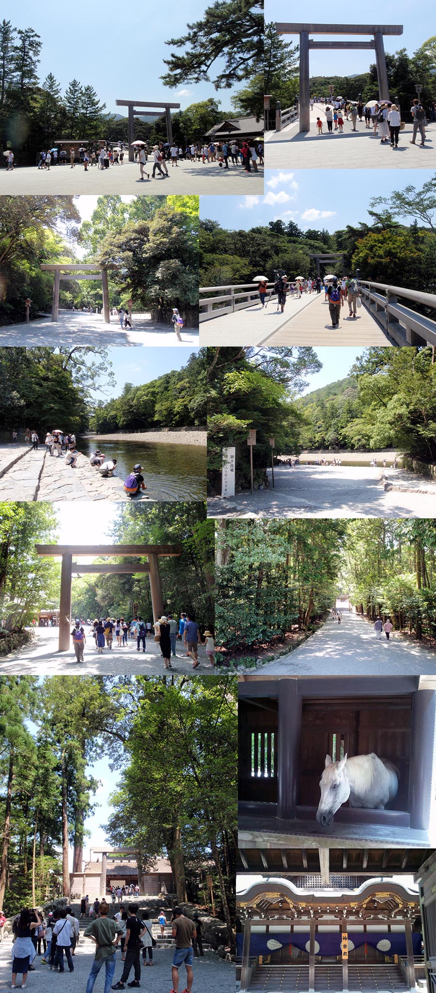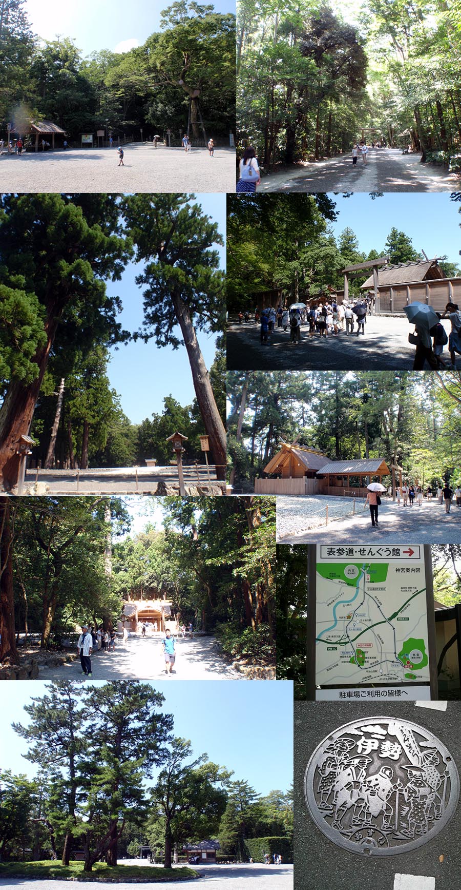 | 内宮へ到着、ここもゆっくりまわりました。五十鈴川は小学校の修学旅行の思い出の場所。でも記憶と少し違った。 記憶と言うものは、いい加減なものだと思いました。そろそろお腹もすいたので昼飯を食いに・・・ |