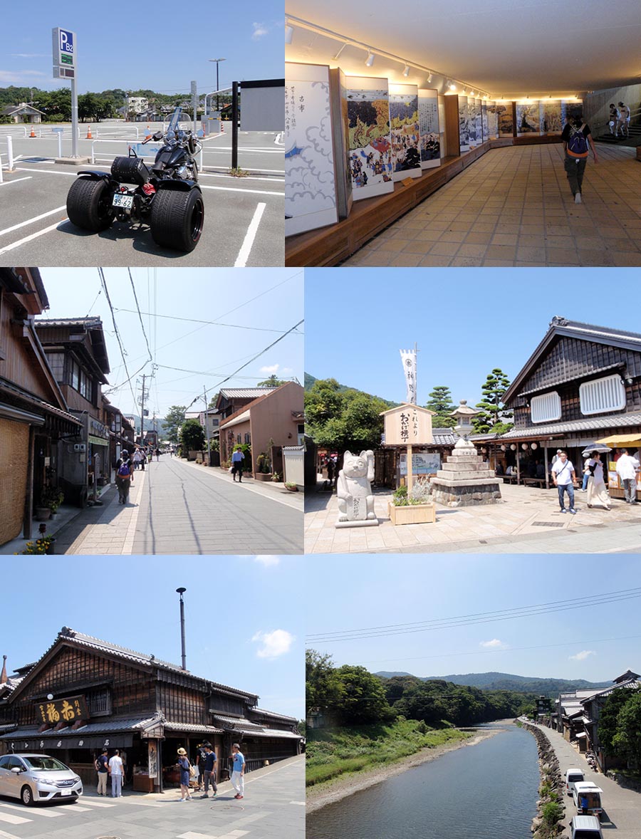 | 内宮へ行くためにガレージに・・・こっちは有料駐車場しかないようですね???午前10時30分ごろに到着 ガレージはまだガラガラでした。そして歩いて行くといろいろな店があり内宮に参ってから昼ごはんを食べて帰る事にした。とりあえずは内宮へ・・・ |