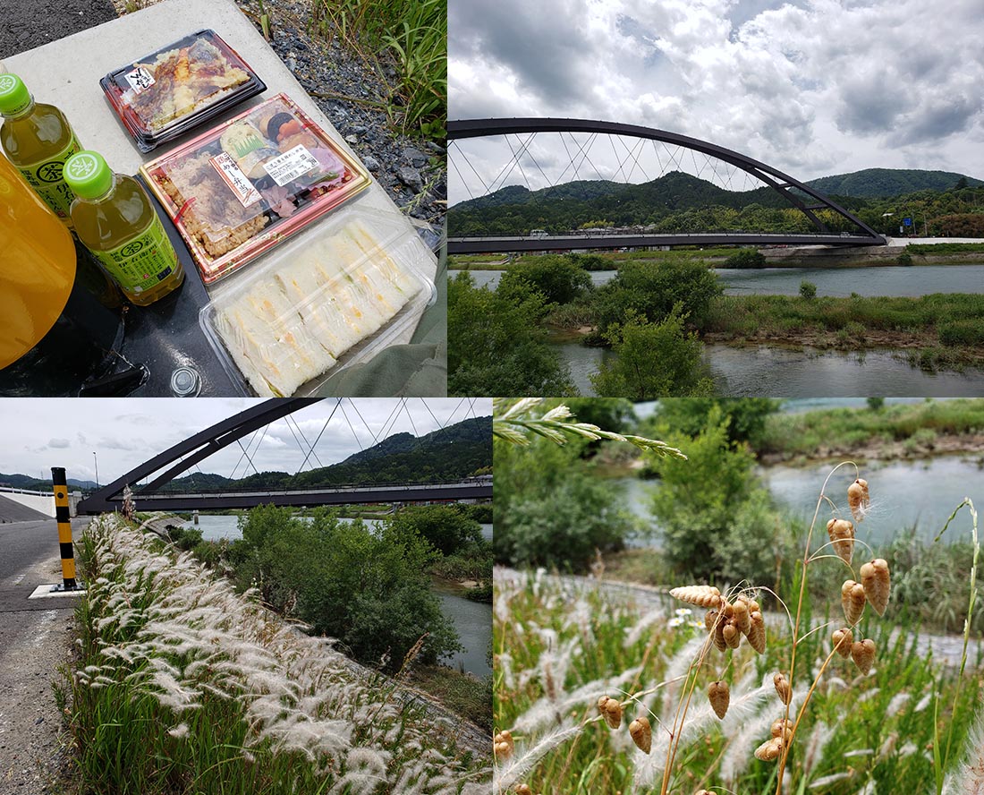 | その場所で休憩して弁当を食べました。そしてゆっくりと帰りは川の反対側を通って、瀬田の唐橋を渡りその後は来たコースと同じ道で帰りました。 帰って夕方に天気予報通り雨が降ってきました。近場のツーリングなので全く問題無し、久々に外の空気を吸ってリフレッシュできたと思います。 |
