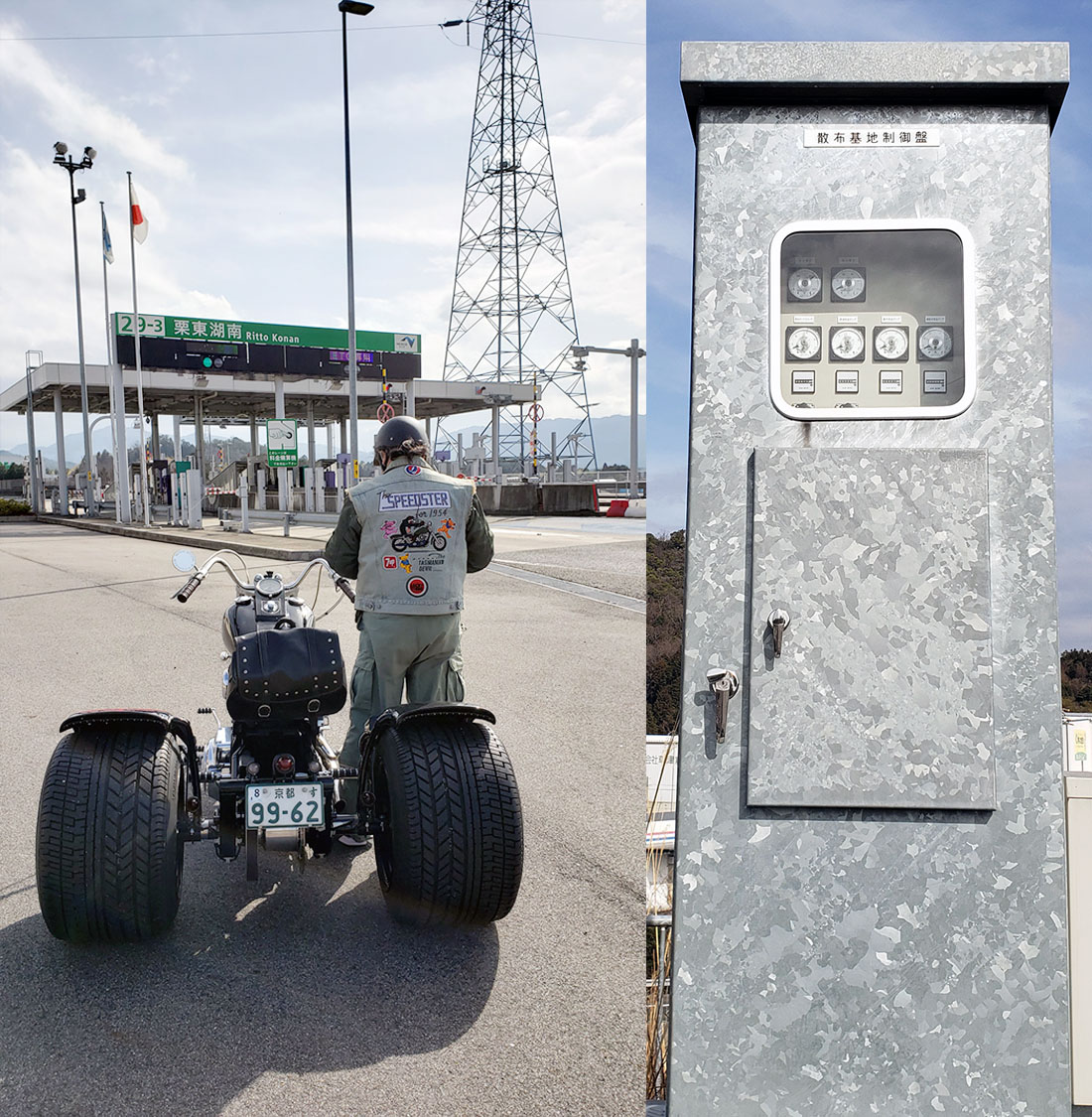 | 今日は、天気が良くて最高気温が16度と、大変暖かいので 少しトライクに乗ってみる事にした。遠方へ行くのは、えらいので・・・名神高速京都東ICから一般道が少し混んでいるようだったので 名神高速にのることにしました。別段停まりたいわけではなかったけど、草津SAの一番奥へ行って、缶コーヒー休憩タイムを取りました。 |