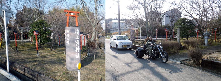| 途中、裏道を走っていると神社の鳥居が見えたのでとりあえず記念撮影をしようと、ちょうど前で停車して 写真撮影を・・・よりによって後ろに車が停車、おばはんが神社へ拝みに行きました。本当に迷惑・・・ カメラをかまえているのにもう少し前で停めたら良いのに???まあおばはんやから仕方無いけど? ちなみにその神社は、滋賀県大津市にある梅之宮神社です。そして途中から西大津バイパスを通って帰宅しました。 午後3時すぎでした。家で遅い昼飯を食ってガレージ掃除等をして今日は終わり〜 実に疲れました。 |