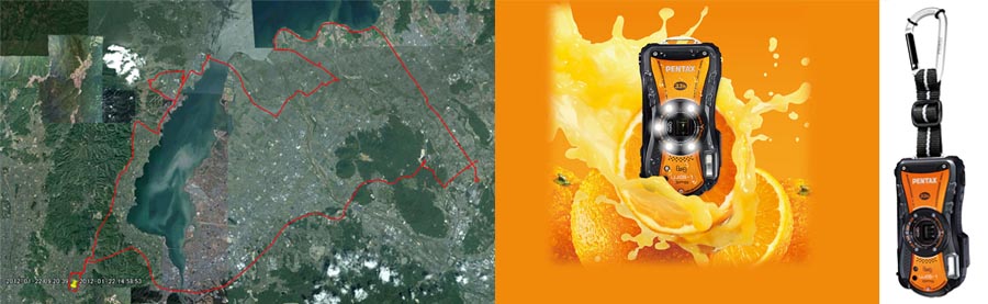 | 先日まで使っていた富士フィルムの安物デジカメが故障ばかりするので、新しくPENTAX Optio WG-1 GPSを購入しました。 そのテストも兼ねて持って行きました。防水、GPS内蔵カメラですが結構GPSが正確です。 画像が小さくて見えにくいと思いますがこの赤線の部分を今日のプチツーで走りました。色々な機能が付いていますがまだ使いきれていません・・・(笑) |