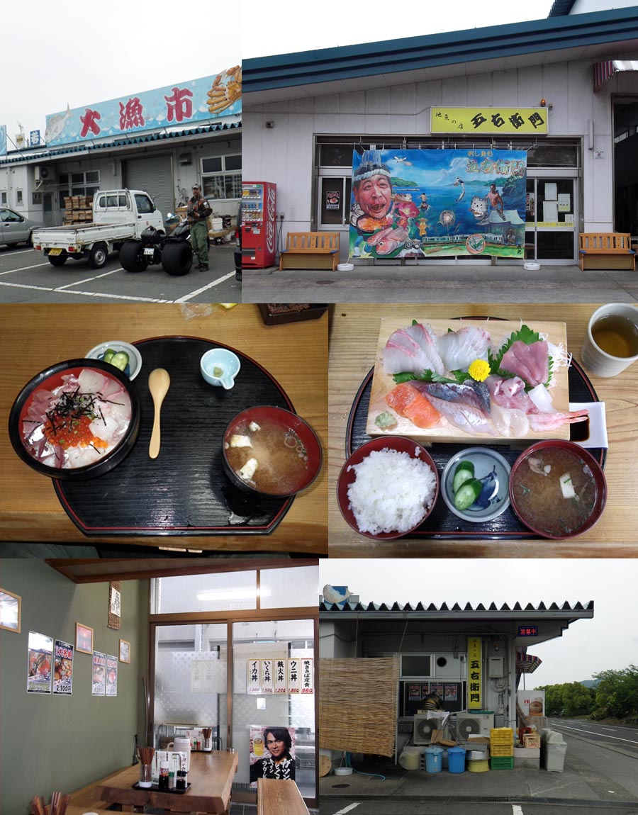 | もうこの時間だったら空いているだろうと再度、小浜 五右衛門へ行ってみるとバッチリ がらがらでしたが、後片付けが出来てなくて適当に座ってまっているとこちらへどうぞって 店の人が・・・知らない男女若者3人横並びの前へお見合いのように当方と嫁が座って・・・ 相手もゆっくり出来なかったのでは?(笑)当方は海鮮丼、嫁は造り定食、どちらも新鮮な 魚が素材だけあってとっても美味かったです。嫁はごはんおかわりしていました(爆) |
